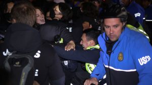 Law enforcement clashed with protesters calling for a ceasefire in the Israel-Hamas war outside of the Washington headquarters of the…